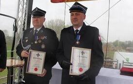 Srebrnym medalem „Za Zasługi dla Pożarnictwa” - Krzysztofa Bladzich, Pawła Marzyńskiego, Marka Błaszkiewicza