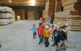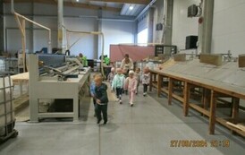 Przedszkolaki w zakładzie przetwórstwa drzewnego w Paterku